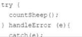 개발자는 countSheep()에서 발생할 수 있는 오류를 catch하고 handleError() 함수에 전달하기 위해 try...catch 문을 사용하려고 합니다.