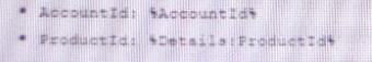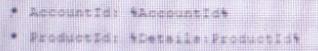 통합 절차에는 APEX 클래스의 메서드를 호출하는 원격 작업 요소가 포함됩니다. 이 방법에는 Accountid 및 ProductId의 두 필드가 필요합니다. 통합 절차 데이터 JSON에는 다음 노드가 포함됩니다.