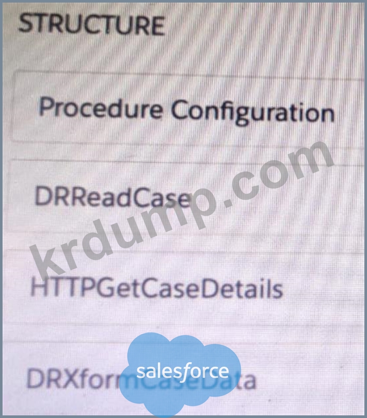 아래 전시를 참고하세요. DRReadCase DataRaptor Extract Action에서 HTTP Action의 HTTP URL로 CaseNumber 노드를 전달하기 위해 이 통합 절차 구조에 필요한 마지 코드는 무엇입니까?
