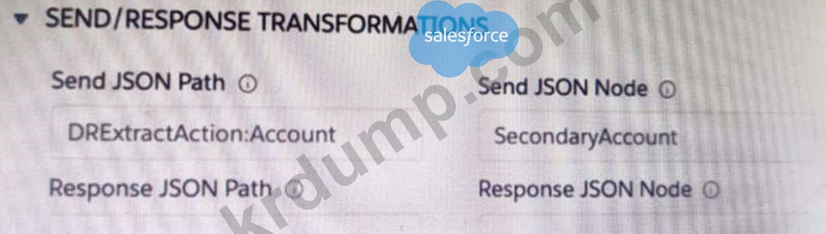 A developer has configured an integration Procedure element with SEND/RESPONSE TRANFORMATIONS as shown.