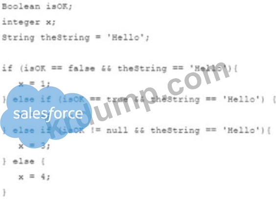 이 코드에 따르면 x의 값은 무엇입니까?