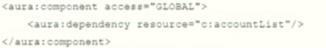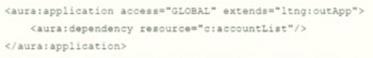 Visualforce 페이지에서 사용되는 Lightning 구성 요소 c:accountList에 대한 종속성을 선언하기 위해 어떤 Lightning 코드 세그먼트를 작성해야 합니까?