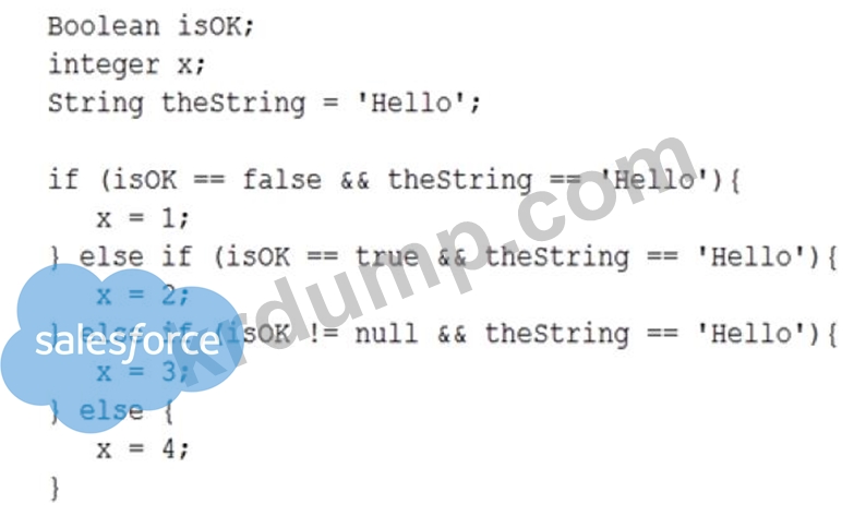 이 코드를 기준으로 x의 값은 무엇입니까?