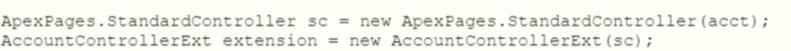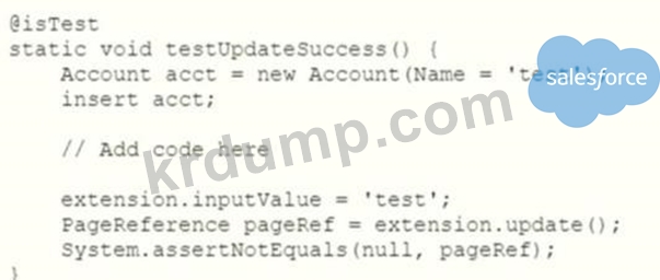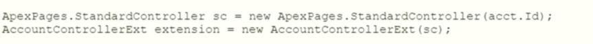 위의 단위 테스트를 위한 컨트롤러 확장을 생성하기 위해 표시된 위치에 무엇을 추가해야 합니까?