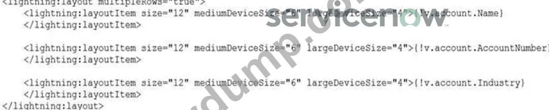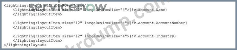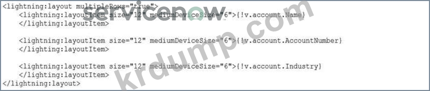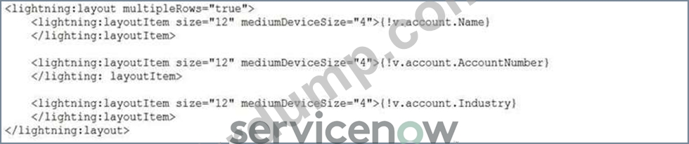 위의 구성 요소 코드를 참조하십시오. 정보는 모바일 장치에서 예상대로(세 행으로) 표시됩니다.