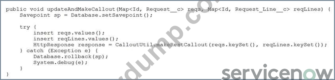 회사에는 요청 및 요청 라인을 업데이트하고 업데이트된 레코드로 외부 ERP 시스템의 REST 끝점에 콜아웃을 만드는 코드가 있습니다.