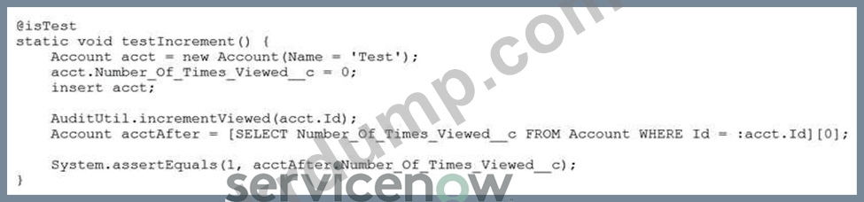 위의 테스트 메소드는 Number_of_Times_Viewed__c 값을 증가시키는 @future 메소드를 호출합니다. Number_of_Times_Viewed__c가 0과 같기 때문에 어설션이 실패합니다.