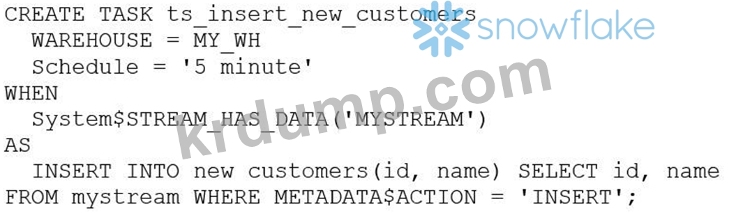다음 DDL 명령은 스트림을 기반으로 작업을 생성하는 데 사용되었습니다.