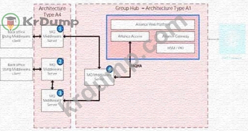 * 구성 요소 2(그룹 허브의 MQHA 미들웨어 서버): 이 서버는 A1 그룹 허브 내에 위치하며, 고객 커넥터를 통해 사용자 데이터를 Alliance Access 및 Gateway에 연결합니다. 메시지 큐잉을 처리하고 Swift Alliance Gateway 기술 문서에 정의된 대로 브리징 서버(미들웨어 서버) 역할을 합니다.