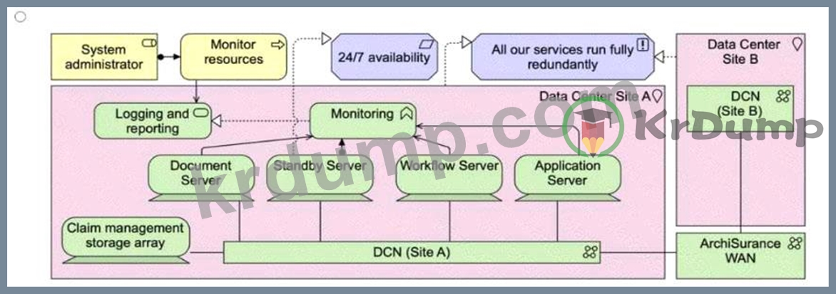 The ArchiSurance enterprise document management solution plays a crucial role in supporting a large number of document types and managing a high volume of document-based transactions each day. Given its business- critical nature, the document management solution is hosted redundantly across two geographically separate data center sites: Site A and Site B. Both sites are configured identically to ensure seamless operations.