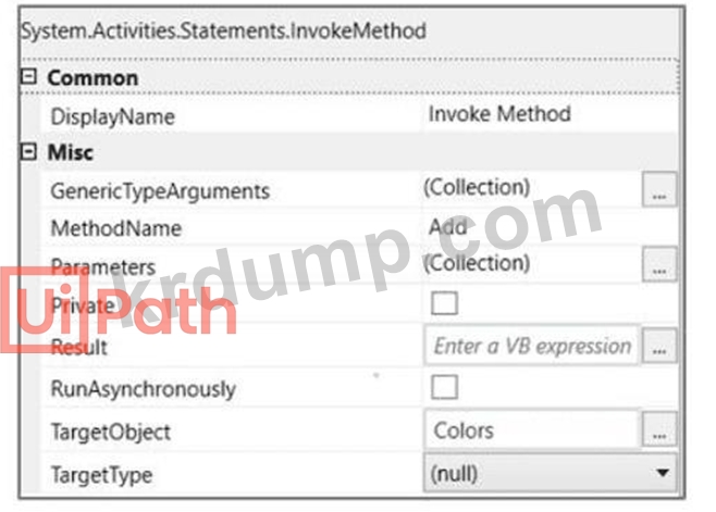 개발자가 Invoke Method 액티비티를 사용하여 문자열 목록에 항목을 추가하려고 합니다. 목록은 다음과 같이 선언됩니다.