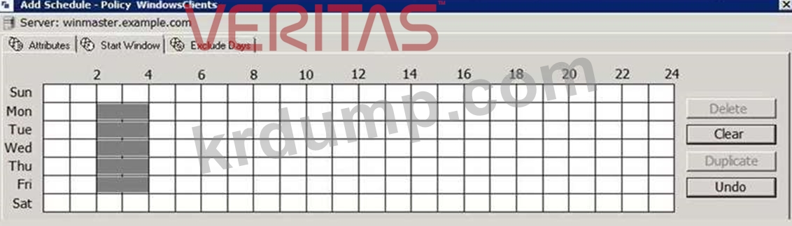 백업 정책은 일정 유형이 빈도: 1일인 전체 백업 일정을 사용합니다. 일정의 시작 창은 전시회에 표시된 대로 구성됩니다.