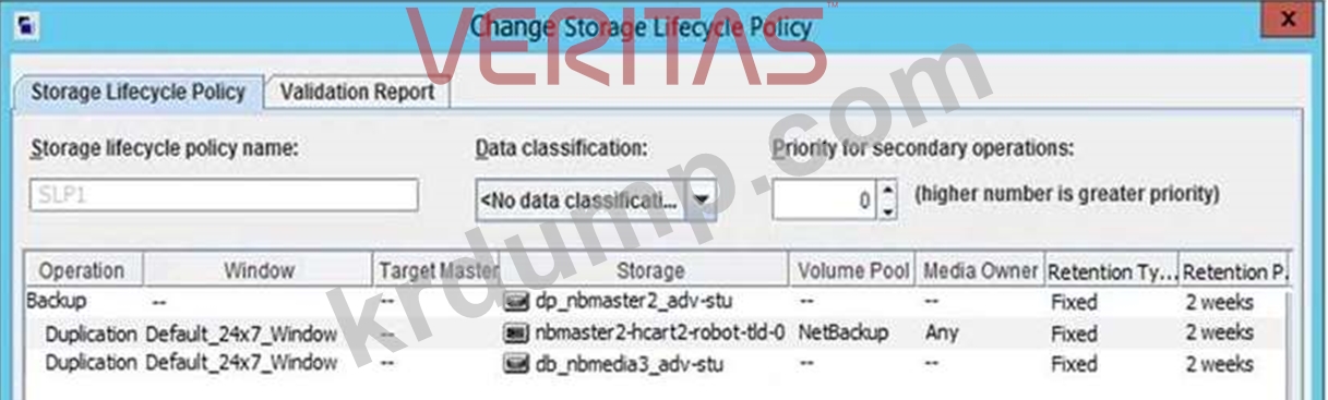 다음 스토리지 수명 주기 정책은 클라이언트에서 데이터를 백업하는 데 사용되었습니다. 모든 복제 작업이 완료되었으며 만료된 백업이 없습니다.