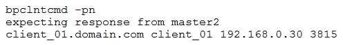 관리자에게는 master1이라는 마스터 서버가 있습니다. 관리자가 클라이언트에서 bpclntcmd -pn 명령을 실행하면 관리자는 다음 출력을 수신합니다.