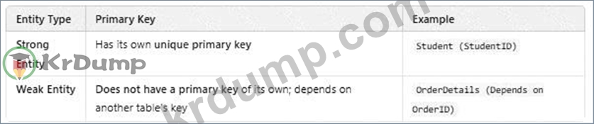 데이터베이스 설계 과정에서 강력한 엔터티와 약한 엔터티를 구별하는 데 사용되는 주요 특징은 무엇입니까?