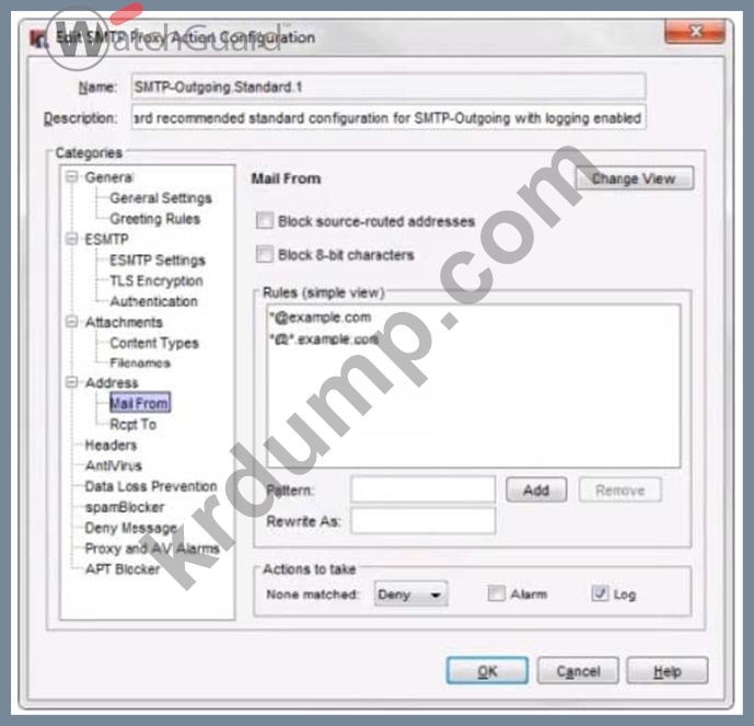 이 이미지의 SMTP 프록시 작업 설정에서 발신 SMTP 트래픽에 대해 구성된 옵션은 무엇입니까? (하나를 고르시 오.)