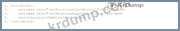 이 예제는 속성에 @wd:Relationship을 올바르게 사용했지만, 논리적 결함이 있습니다. wd:Relationship='Child'인 경우 두 번째 <xsl:when>은 "CH"를 출력하지만, 조건의 순서는 중요합니다. 그러나 가장 큰 문제는 옵션 C만큼 정확한 구조나 의도와 일치하지 않는다는 것입니다. Workday 설명서에는 옵션 C와 같은 정확한 속성 기반 조건이 명시되어 있는 경우가 많습니다.